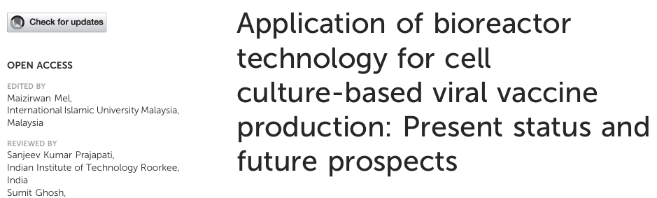 Bioreactors play a crucial role in large-scale cell culture-based viral vaccine production (Figure 1). With advances in vaccine manufacturing, increasingly scalable bioreactors and virus-susceptible cell lines have been applied to produce various vaccines.